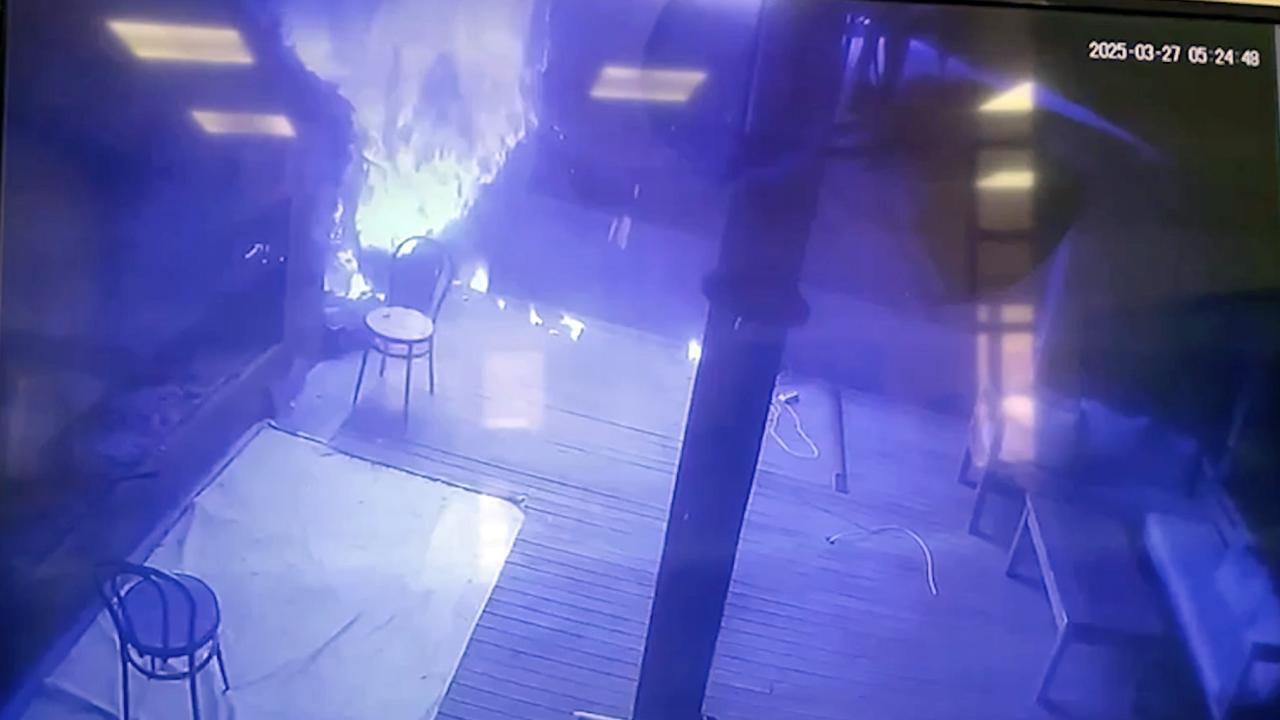 Kamera kayıtlarında, bir süre sonra bu kişilerin kafeterya bölümünden ayrıldığı, saat 05.22’de şöminenin yan tarafında bulunan süs çiçeğinin tutuşmasıyla alevlerin başladığı yer alıyor.