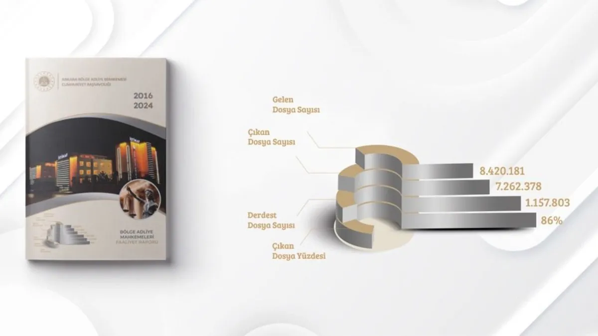 Bölge Adliye Mahkemelerinin 9 yıllık performansını gösteren faaliyet raporları, Ankara Bölge Adliye Mahkemesi Cumhuriyet Başsavcılığı tarafından kitap haline getirildi. Kitapta, Yargıtay Başkanlığının iş durumuna etkisiyle birlikte Bölge Adliye Mahkemelerinin kuruluşundan itibaren iş durumu ve işleyişine dikkat çekilerek, 17 bölgede faaliyet gösteren Bölge Adliye Mahkemesi dairelerinin 9 yıllık performanslarını gösteren istatistiksel verilere yer verildi. Ayrıca kitapta, Bölge adliye mahkemelerine 20 Temmuz 2016’dan 31 Aralık 2024’e kadar olan 8 milyon 420 bin 181 dosyanın 7 milyon 262 bin 378’inin karara bağlandığı da yer alıyor.