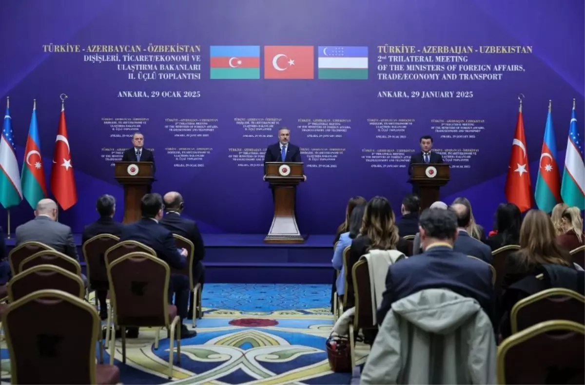 ‘TÜM BU KONULARI TEKNİK DÜZEYDE ELE ALMAYA DEVAM EDECEĞİZ’ Türkiye, Azerbaycan ve Özbekistan Dışişleri, Ticaret, Ekonomi ve Ulaştırma bakanlarının katılımıyla…
