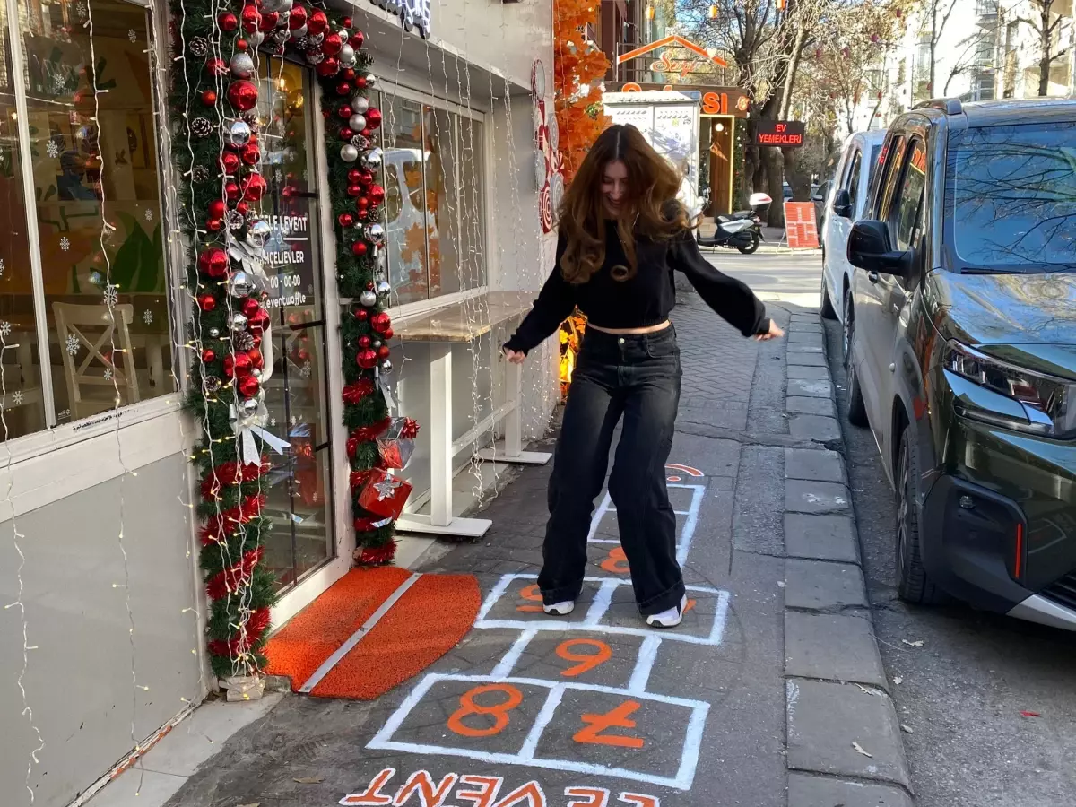 ANKARA’da tatlı dükkanı işleten Levent Çelik, iş yerinin önünde kaldırıma kızının oynaması için çizdiği seksek oyunu ile gencinden yaşlısına birçok kişiyi çocukluğuna götürdü.